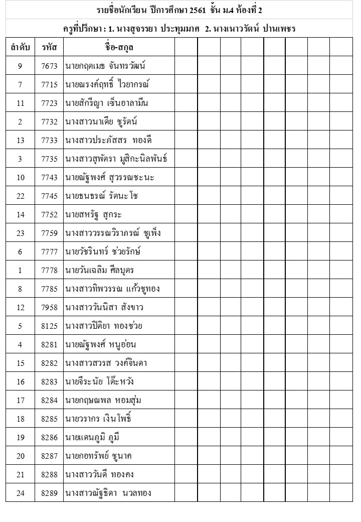 ชั้นมัธยมศึกษาปีที่ 4 ห้องที่ 2