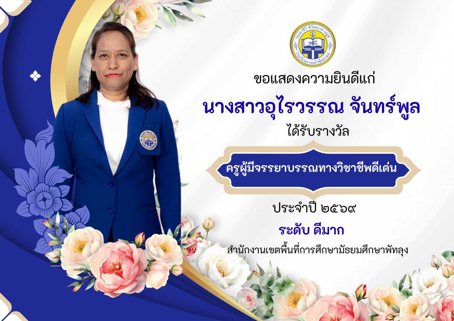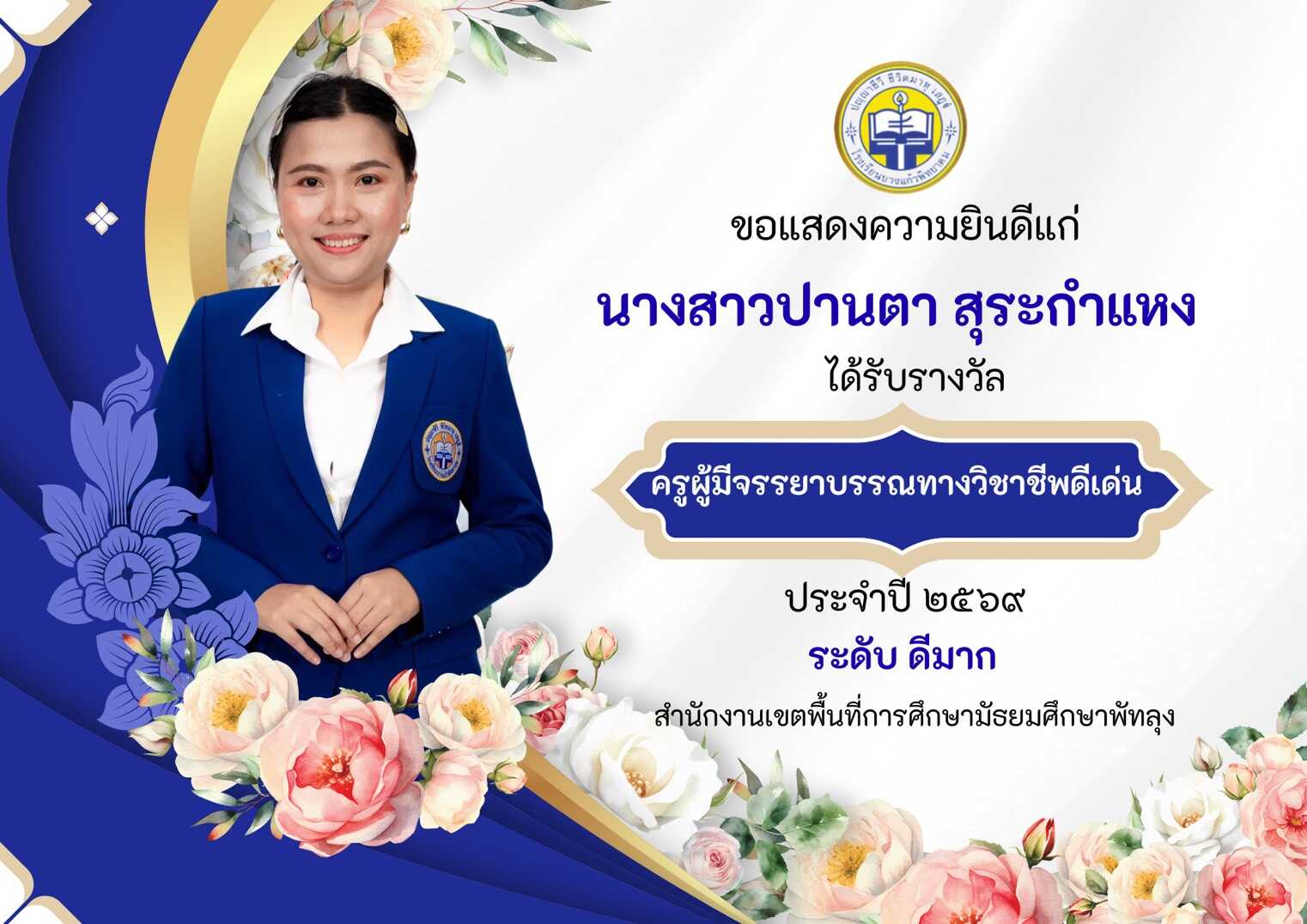 ผลการคัดเลือกรางวัลครูมีจรรยาบรรณทางวิชาชีพดีเด่น ประจำปี 2569 สำนักงานเขตพื้นที่การศึกษามัธยมศึกษาพัทลุง ระดับดีมาก