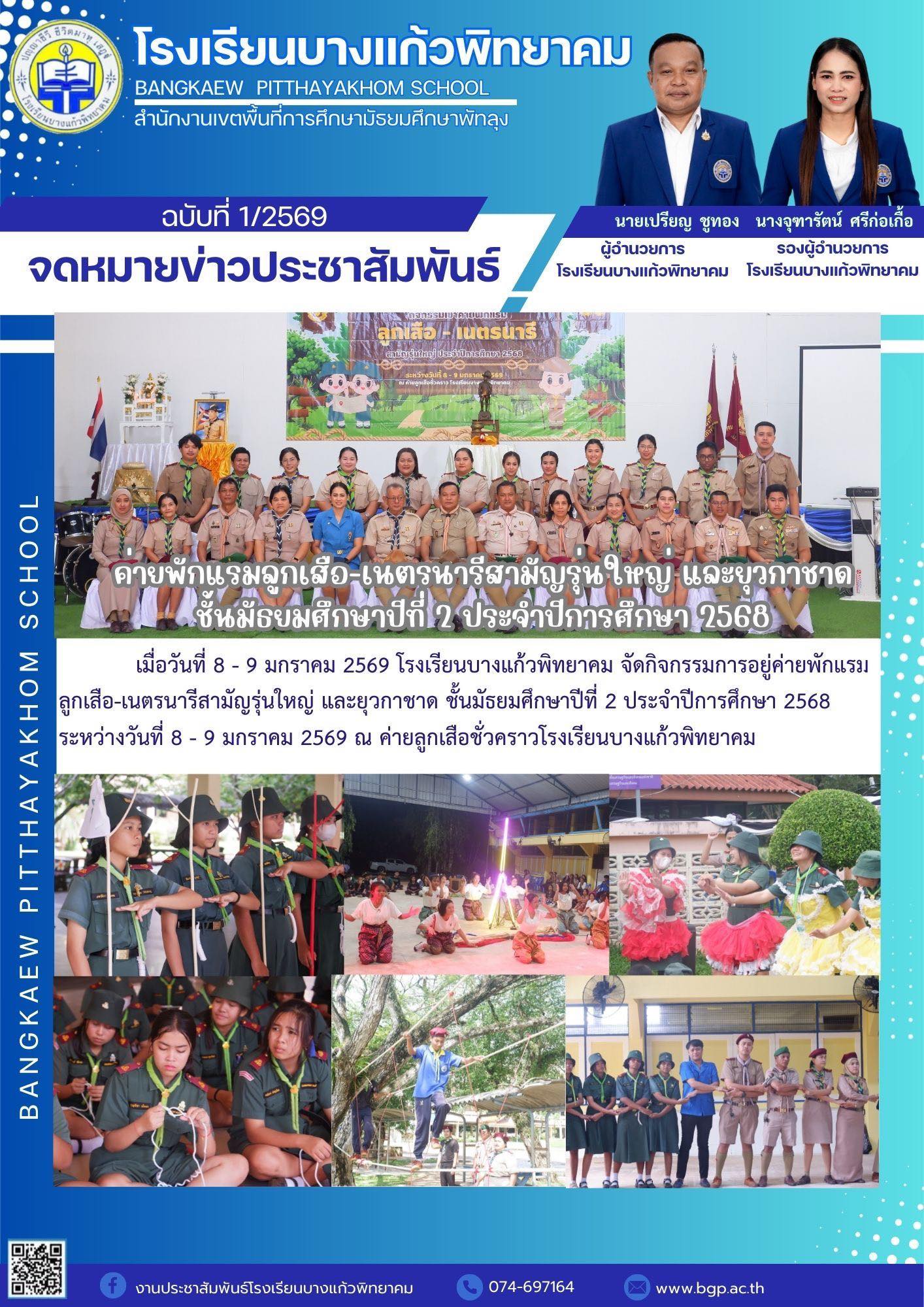 | เมื่อวันที่ 8 - 9 มกราคม 2569 โรงเรียนบางแก้วพิทยาคม จัดกิจกรรมการอยู่ค่ายพักแรมลูกเสือ-เนตรนารีสามัญรุ่นใหญ่ และยุวกาชาด ชั้นมัธยมศึกษาปีที่ 2 ประจำปีการศึกษา 2568 ระหว่างวันที่ 8 - 9 มกราคม 2569 ณ ค่ายลูกเสือชั่วคราวโรงเรียนบางแก้วพิทยาคม |