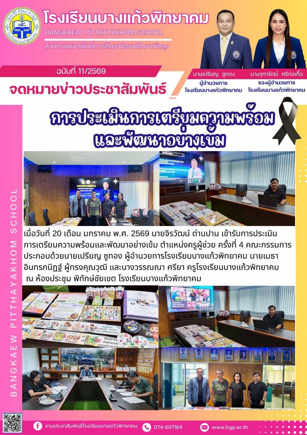 เมื่อวันที่ 20 เดือน มกราคม พ.ศ. 2569 นายจิรวัฒน์ ด่านปาน เข้ารับการประเมินการเตรียมความพร้อมและพัฒนาอย่างเข้ม ตำแหน่งครูผู้ช่วย ครั้งที่ 4 คณะกรรมการประกอบด้วยนายเปรียญ ซูทอง ผู้อำนวยการโรงเรียนบางแก้วพิทยาคม นายเมธา อินทรกนิฏฐ์ ผู้ทรงคุณวุฒิ และนางวรรณณา ศรียา ครูโรงเรียนบางแก้วพิทยาคม
