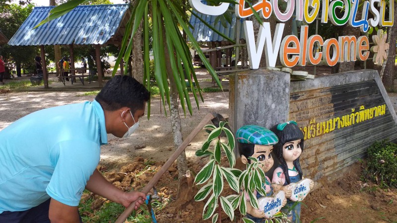 โดยมีบุคลากรมาช่วยกันทำความสะอาดและปรับทัศนียภาพภายในบริเวณโรงเรียน