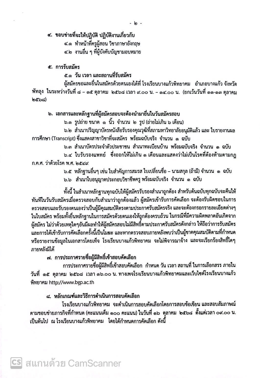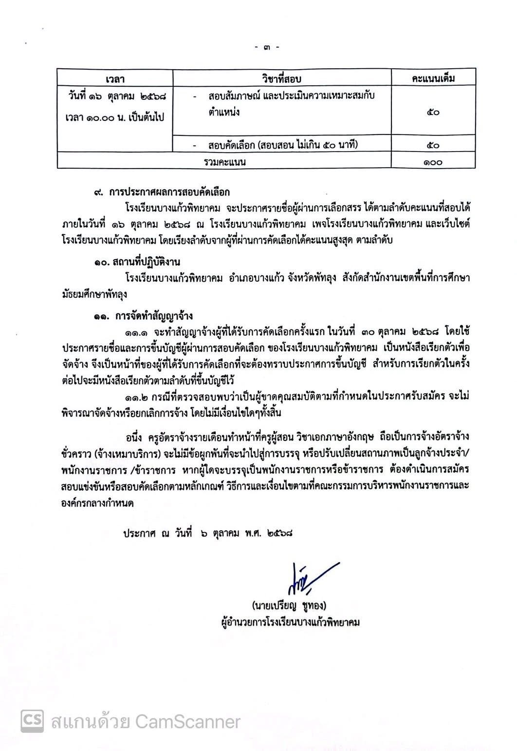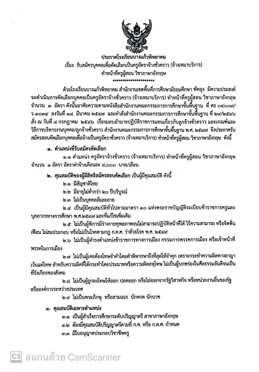 ? ประกาศโรงเรียนบางแก้วพิทยาคม เรื่อง รับสมัครบุคคลเพื่อคัดเลือกเป็นครู อัตราจ้างชั่วคราว (จ้างเหมาบริการ) ทำหน้าที่ครูผู้สอน วิชาภาษาอังกฤษ