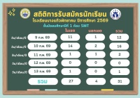 สถิติการรับสมัครนักเรียน ชั้นมัธยมศึกษาปีที่ 1 (SMT) โรงเรียนบางแก้วพิทยาคม ประเภทห้องเรียนพิเศษ ปีการศึกษา 2569 รับสมัครระหว่างวันที่ 9 - 13 กุมภาพันธ์ 2569